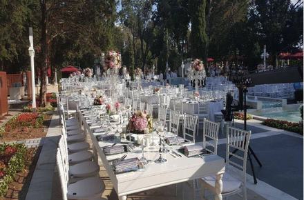 Bu bahçenin arasında 1100 kişilik unutulmaz bir düğüne imza atabiliyorsunuz. Eşsiz bir kır düğünü için gereken ne varsa yapılıyor, süsleme ve masa sandalye giydirmeleri konseptinize uygun olarak sağlanıyor. Kış ayları için ise 25 kişilik odalardan oluşan toplamda 400 kişilik salonlarımız ile hizmet verebiliyoruz. Bu salonların aynı zamanda teknolojik ekipmanlarla donatılmış olmasından dolayı birçok kurumsal etkinliğinizi de düzenleyebiliyorsunuz.