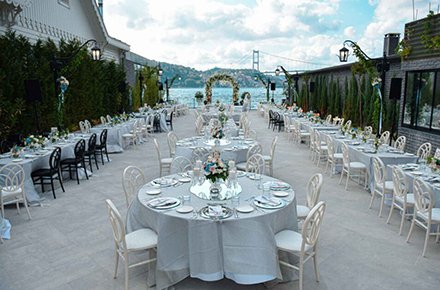 Kendinizi boğazın eşsiz manzarasına kaptıracağınız bir ortamda, sevdiklerinizle hayal ettiğiniz davetlere imza atabilmeniz için sizin yerinize çözüm ortaklarınızı biz buluyoruz. Beraber çalıştığımız dekorasyon firmamızla dilediğiniz konsepti uygulayabiliyor, mekanımızın size sunduğu masa ve chanel model sandalyelerimizle dilediğiniz oturma düzenini sağlayabiliyoruz.