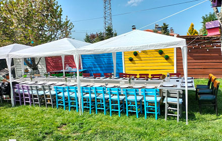 Hizmet verdiğiniz organizasyon türleri? Açılışlar, Baby shower, Bayi toplantısı, Davet ve resepsiyon, Doğum günü, Kına, Kurumsal etkinlikler, Mezuniyet törenleri, Nişan, Parti, Piknik, Sünnet düğünü